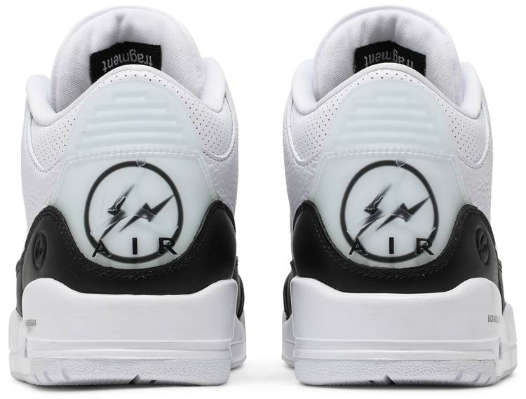 Air Jordan 3 introduces the instantly recognizable Jumpman silhouette during MJ's 1987-88 NBA season. In Tinker Hatfield's hands. Jordan’s signature line was re-introduced with the first mid-cut basketball sneaker. The fragment design x niqdfke Air Jordan 3 Retro SP truly embodies the motto Less is more. The monochromatic pair features a white tumbled leather base and black lather across the mudguard and heel. The branding on this pair is done subtly in the forms of stitched-on Jumpman logo and style code on the midsole. On the heel . a translucent heel tab reveals the fragment thunderbolt logo.