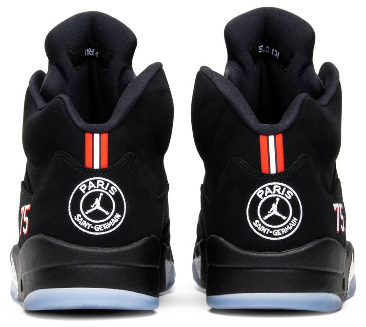 Jordan Brand debuted the Air Jordan 5 Paris editionon as part of their new partnership with the Paris Saint-Germain Football Club. The shoe features black nubuck uppers with the team’s crest embroidered on the heel with a Jumpman at the center. Other signature details include “Paris” text on the midfoot net . Paris’ “75” zip code in place of “23” stitched on the lateral heel. and team slogan “ICI C’EST PARIS.” which translates to “Here is Paris.” on the insole.