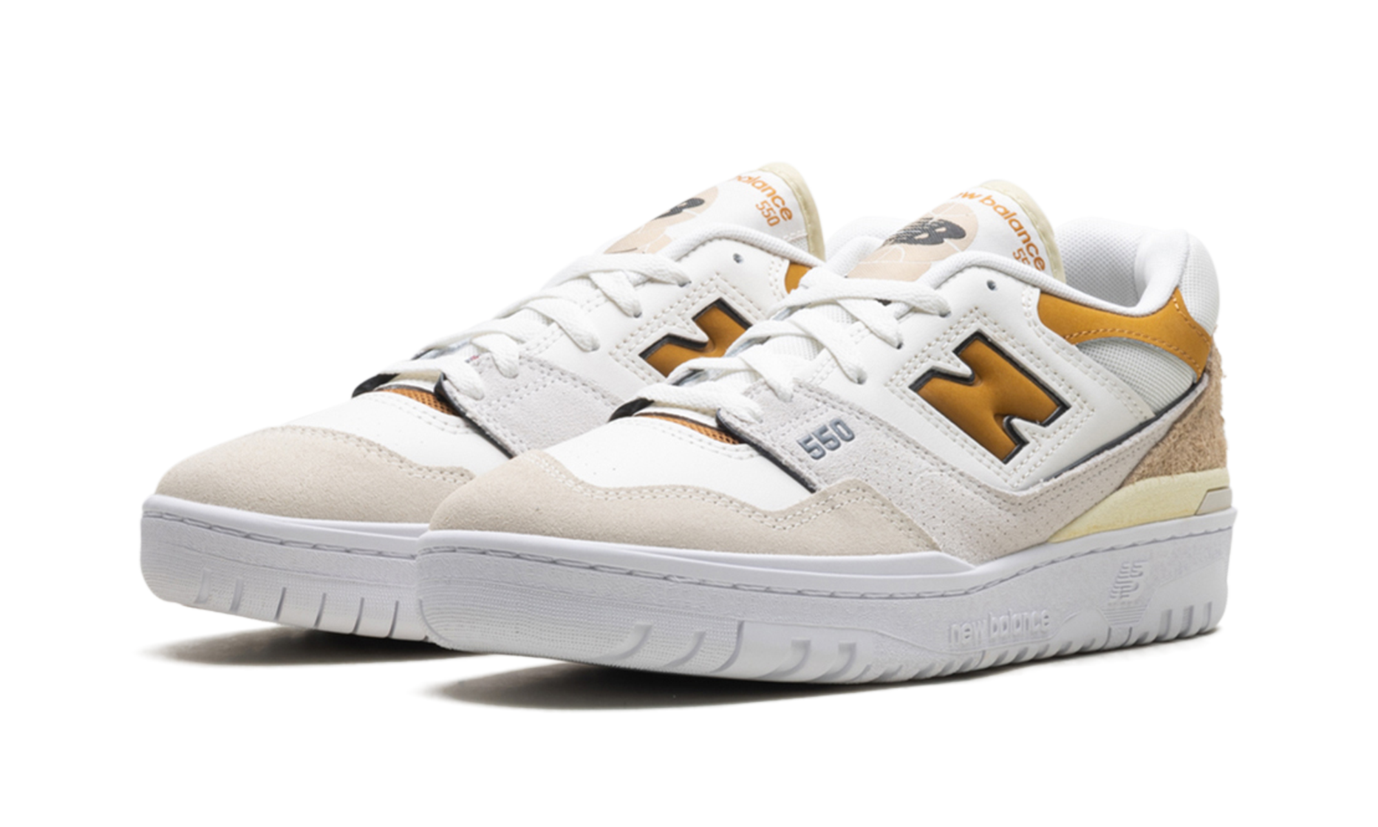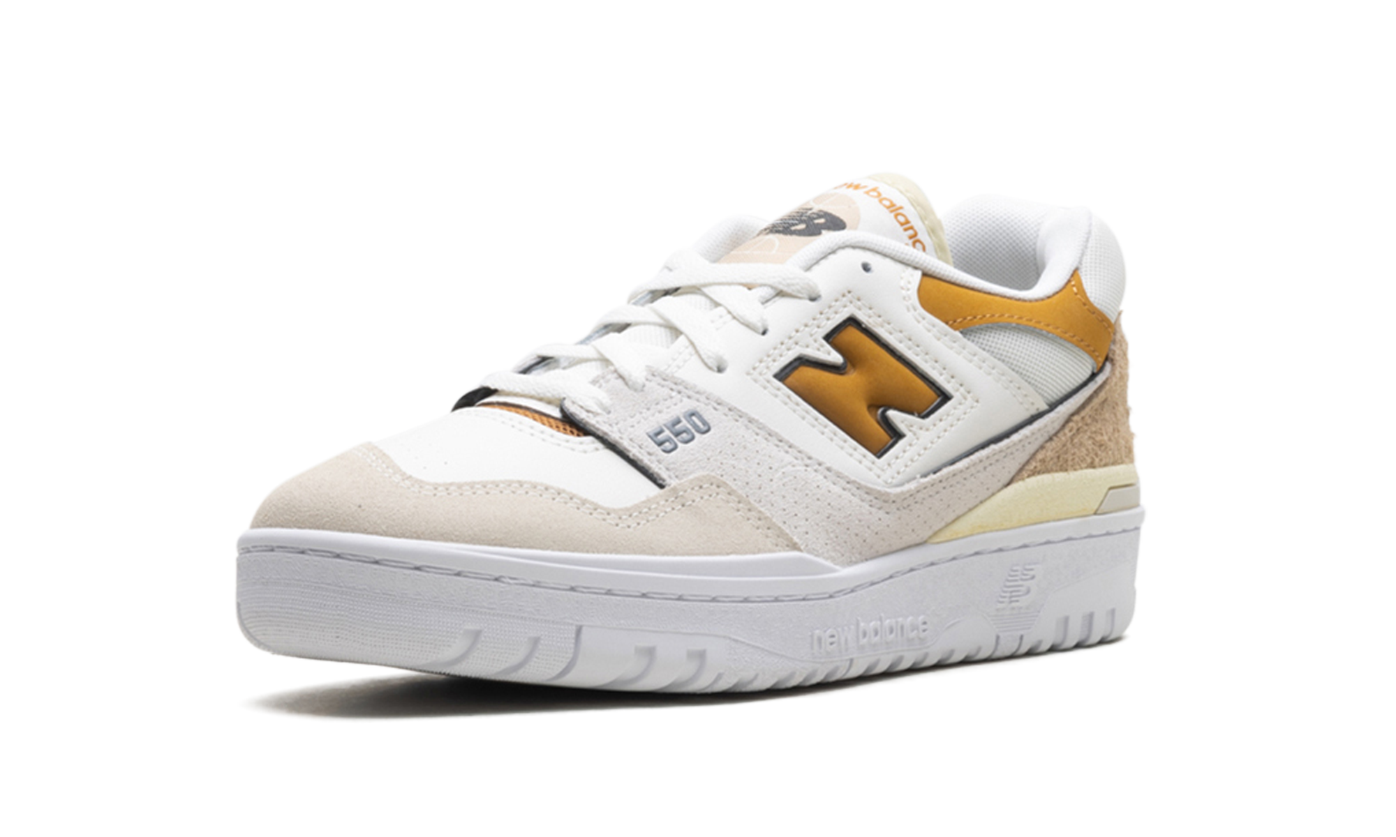 The New Balance 550 "Sea Salt/Tobacco" for women is an exclusive color for women's retro basketball shoe with orange accents. Started in the late 1980s and brought back from archives by Aimé Leon Dore in 2020, the New Balance 550 is loved by theonneurs collections of sneakers for a timeless son look. Here, the shoe has a white leather base with Sea Salt suede ons overlays on the toe and perforated suede ons overlays on the forefoot, center panel and heelon. A “N” Tobacco logo appears on the sides while the “550” orange detail is visible on the forefoot. The “New Balance” brand is located on the talon and tongue. Release date: 20 September 2023