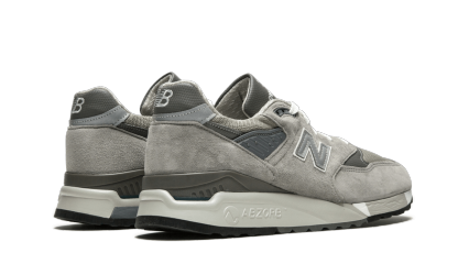 The New Balance M998 in shades of grey is as classic as running shoes come. Made in the United States, these shoes sont assembled using high-end suede and synthetic materials. The "998 New Balance Made in the USA" is stitched in large type through the top of the tongue. ABZORB amortization ® in the middle of the foot repond to the needs of shock absorptionon runners, while the elegant aerodynamic profile ensures an elegant look on foot.